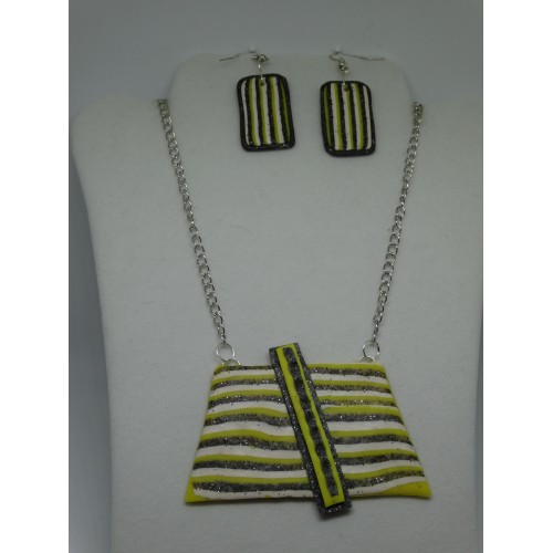 unikatni komplet verižice in uhanov v rumeno sivo beli barvi