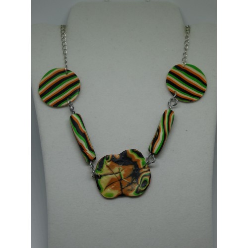 unikatna pisana ovratnica v barvah: oranžna, bela, črna in zelena