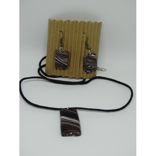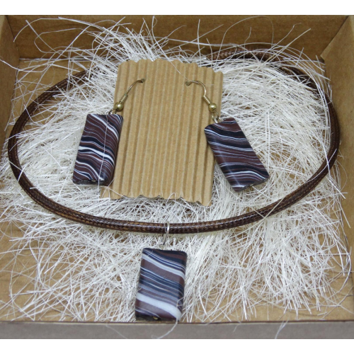 unikatni komplet v rjavih barvah, ovratnica in uhani