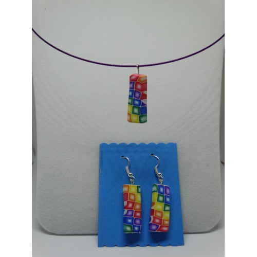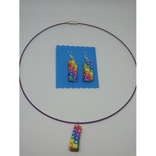unikatni pisan komplet ovratnice in uhanov