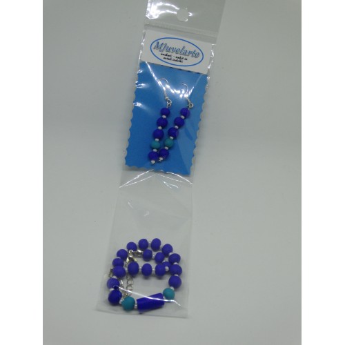 komplet zapestnice in uhanov v modri barvi