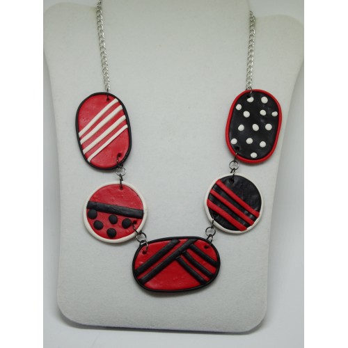 unikatna verižica v kombinaciji rdeče, črne in bele barve