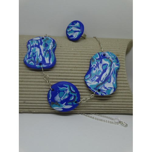 unikatni komplet v modrih barvah - verižica in prstan - možen nakup vsakega posebej