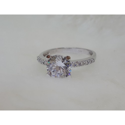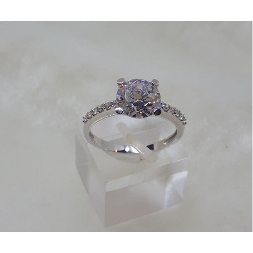 prstan iz belega zlata z večjim in manjšimi cirkoni